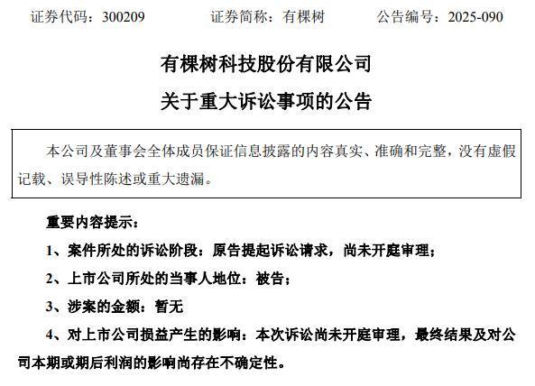 至于本次诉讼对公司的影响,公告称,本次诉讼尚未开庭审理,公司将组织力量积极应诉。最终结果和对公司本期利润或期后利润的影响存在不确定性。公司认为本次诉讼对公司现有的治理结构不会产生重大影响,公司将依法依规参与诉讼程序,积极稳妥应对上述事宜,并持续关注案件进展,及时披露本诉讼的后续相关进展情况,切实维护公司及全体股东的合法权益。