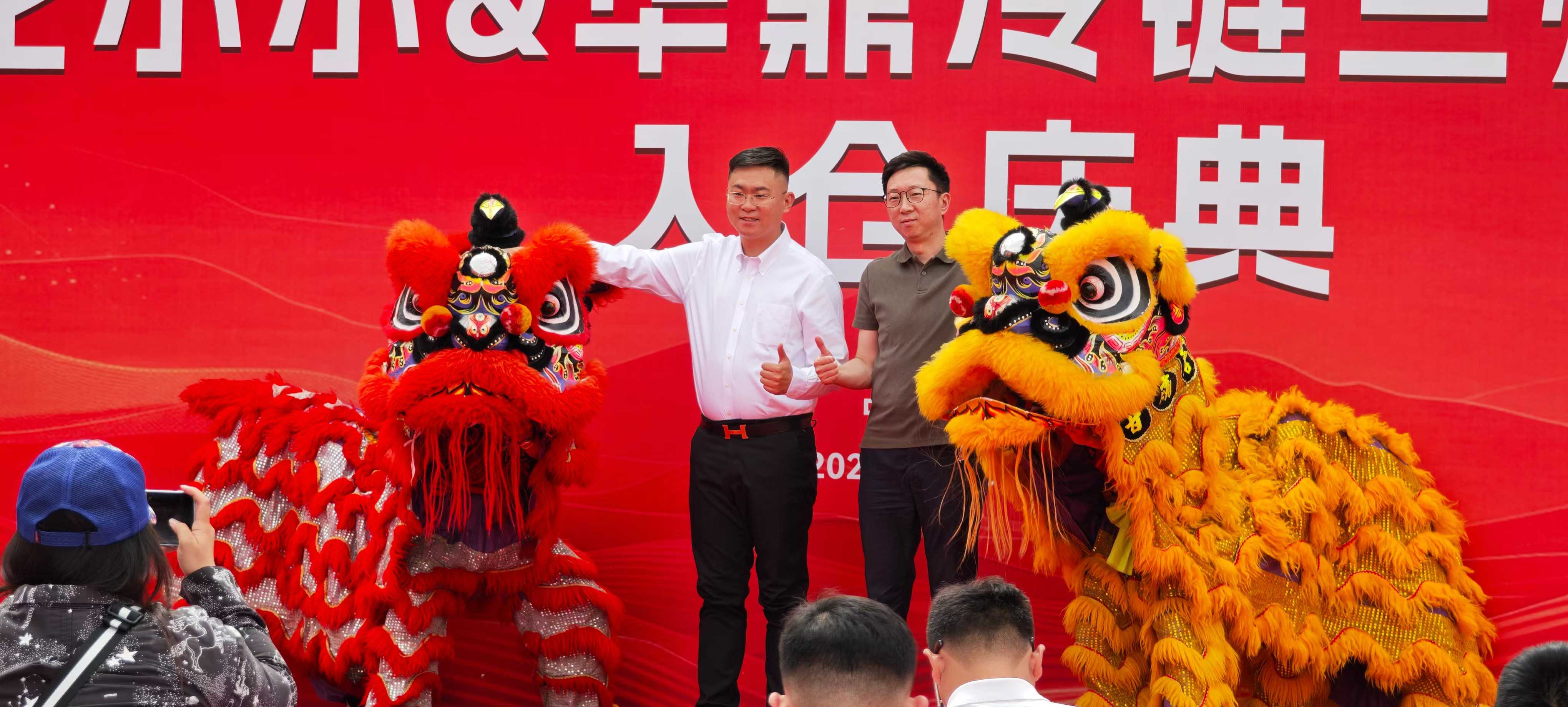 在现场嘉宾的共同见证下,华鼎冷链科技CEO王君、花小小创始人赵刚携手登台,以点睛之笔唤醒祥狮,并与祥狮共同采青接财。