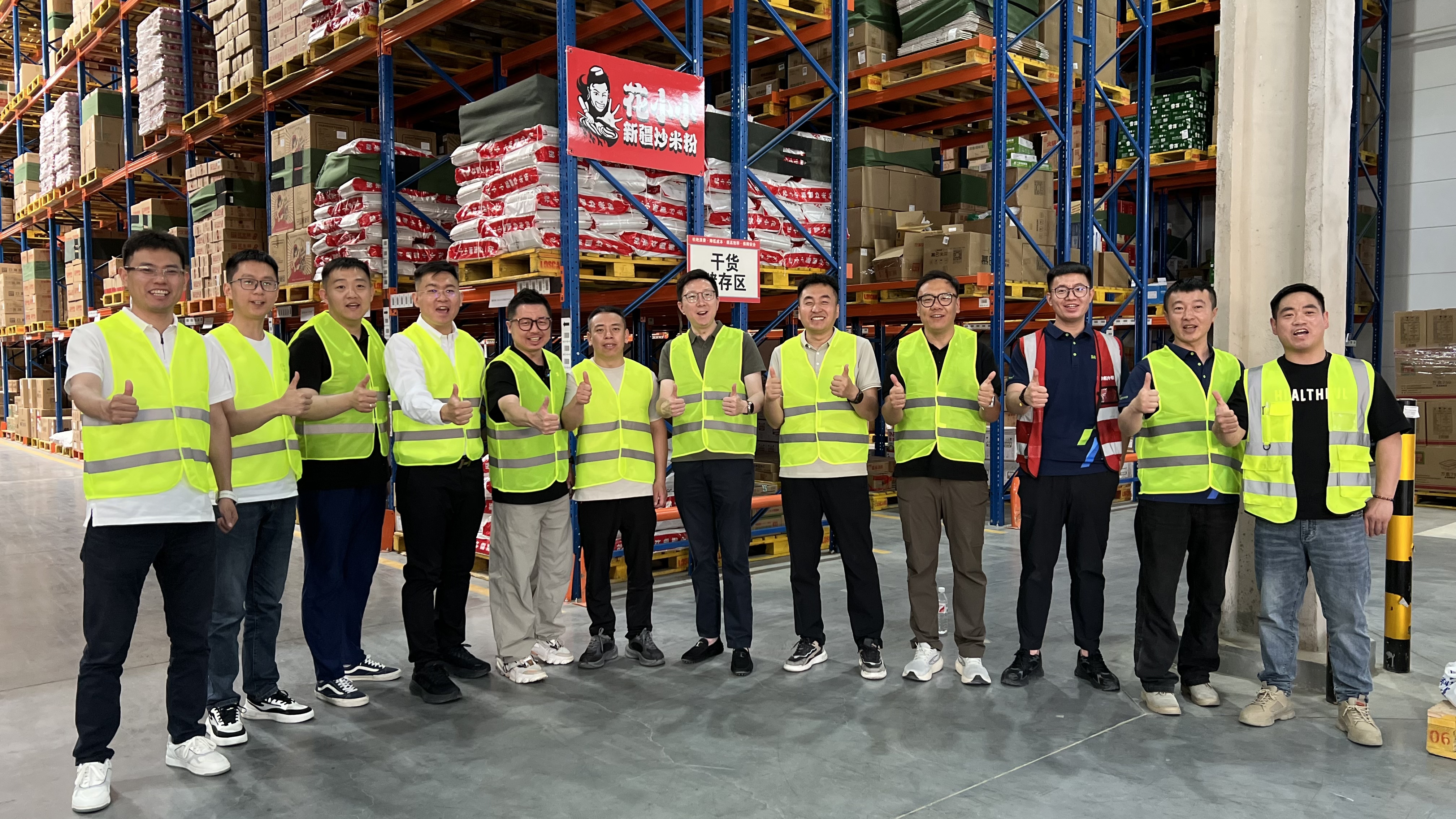 华鼎冷链科技CEO王君、西部大区总监张启鹏、花小小新疆炒米粉创始人赵刚、联合创始人郑应海、联合创始人王宁、全国渠道运营发展高级总监郭雅楠、供应链总监杨勇,王仁和米线副总裁钱剑等领导,参加了本次入仓庆典。