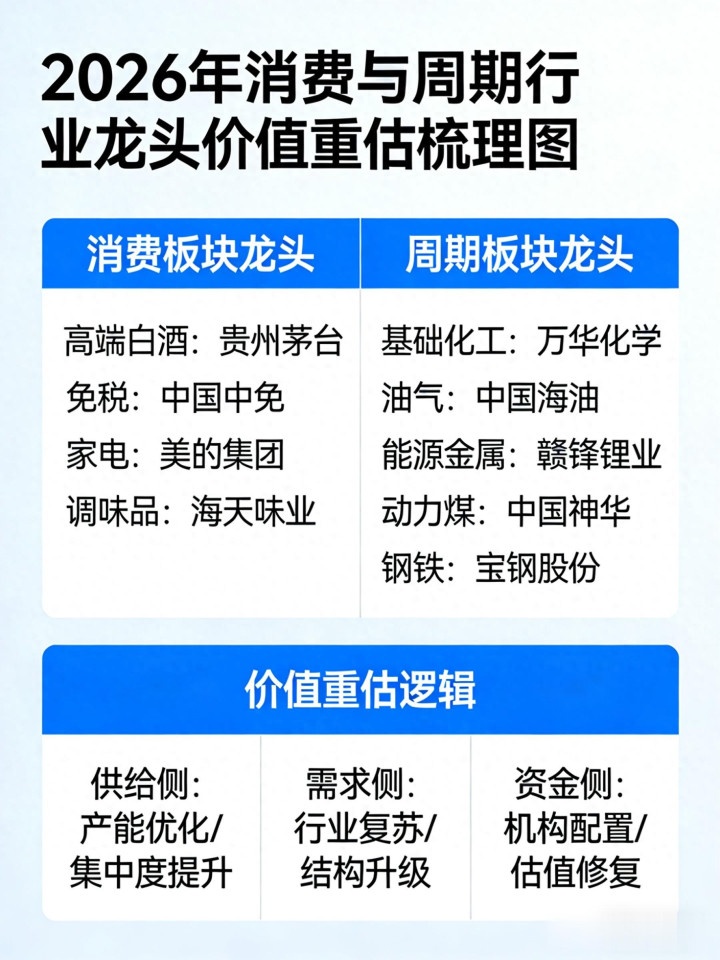而周期行业则迎来了新的叙事转折。政策驱动的行业优化与全球产业链重塑,正在将一批制造业龙头推升至更具竞争力的位置。化工、煤炭、钢铁等行业的龙头企业,在行业格局优化和市场份额提升的逻辑下,盈利稳定性有望增强,估值修复空间值得期待。